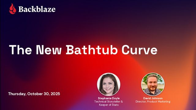 The New Bathtub CurveThe traditional “bathtub curve” has long shaped how we think about drive failures: high early defects, a stable middle life, then a wear-out period. ...more Play October 30 2025| 30 mins More on: Cloud Storage, Drive Stats, Cloud Computing