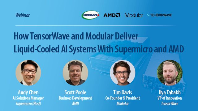 Join Supermicro in the upcoming webinar featuring TensorWave and Modular along side AMD as we take a look at some of the technologies enabling the ...more
