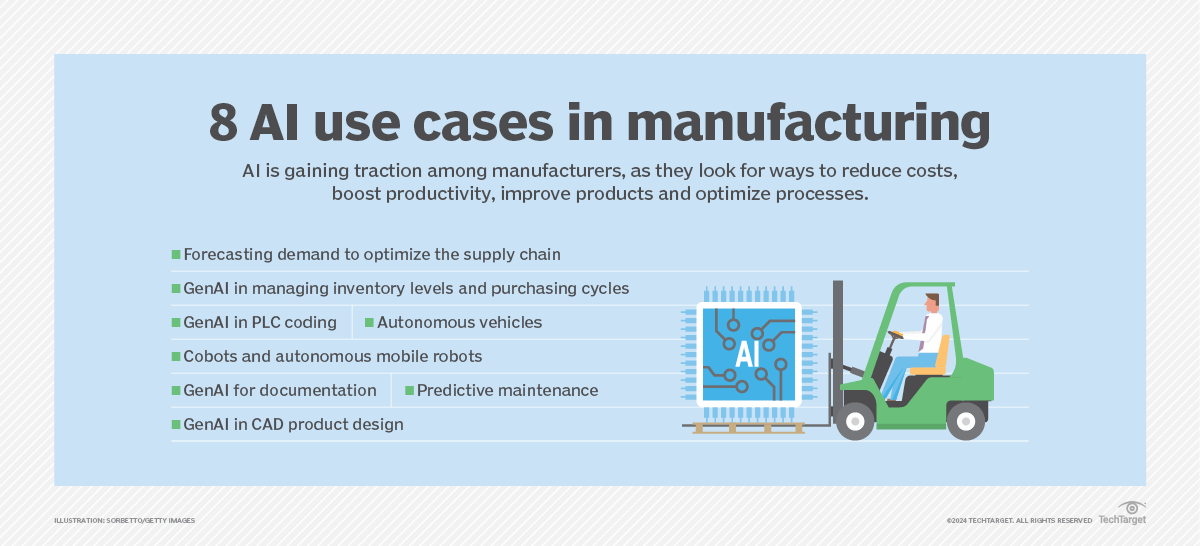 There are also GenAI-infused tools that can improve manufacturing speed and efficiency. "Engineers spend more time searching for information than using it," said Chris Cope, vice president of engineering at CADDi, whose tools are designed to centralize data, such as drawings, spreadsheets and data, stored in manufacturing supplier systems.