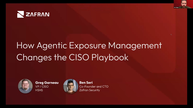 This BrightTALK webinar, 'Agentic Exposure Management,' features Nick Fischer (VP Marketing, Zaffron Security), Greg Garnau (VP & CISO, Hospital ...more