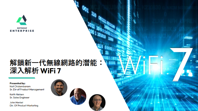 誠摯邀請您參加 NETGEAR專屬線上研討會,與我們一同探索 WiFi 7 —— 下一代無線技術的顛覆性優勢。 本次研討會將以中文(普通話)進行, 內容特別為最終用戶、系統整合商,以及託管服務供應商(MSP)量身打造,協助您在瞬息萬變的網路環境中搶佔先機。 研討會重點 WiFi 7 的強大威力 ...more